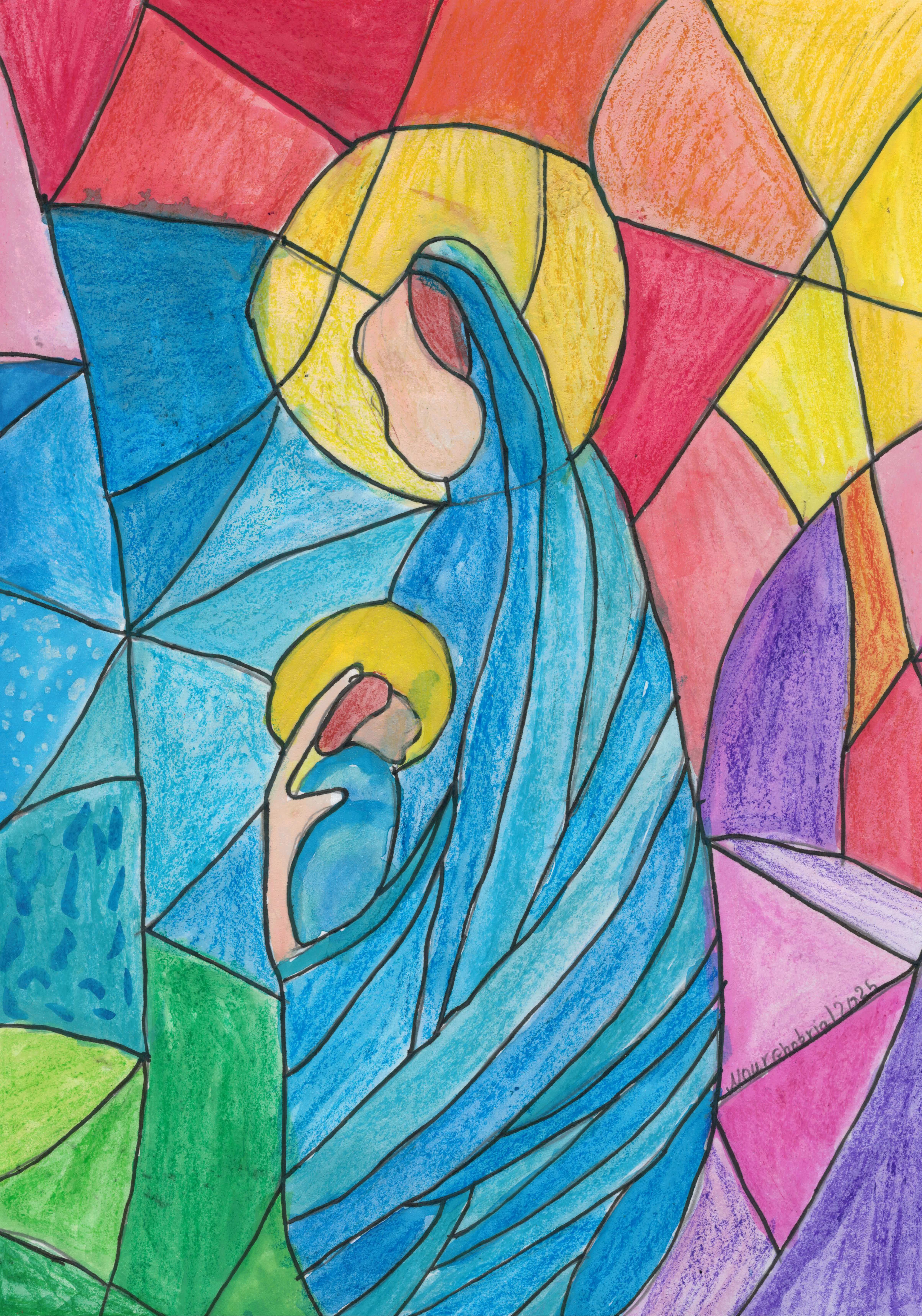 Inspired to share their art and to give back to the Olive Tree Centres, the young artists designed Christmas cards for Mosaic Middle East to sell in the UK to raise vital funds. Here are the two card designs that went on to be printed.